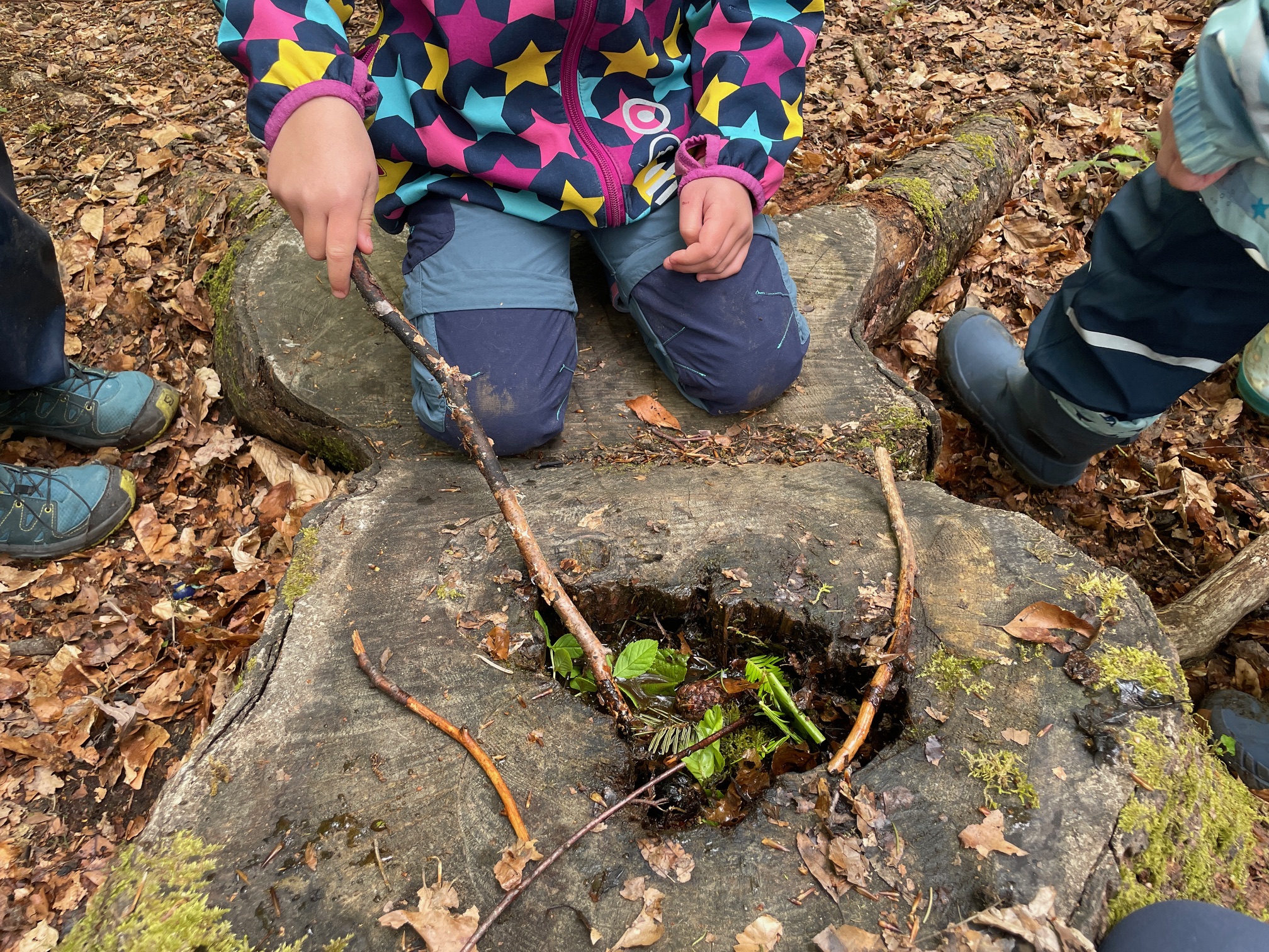 Wir verbringen einen Tag im Wald und entdecken ihn mit allen Sinnen. Dabei lassen wir uns von Wetter und Jahreszeit inspirieren: Wir riechen, tasten und lauschen, um den Wald und seine Bewohner kennenzulernen. Wir vergleichen unsere Sinnesleistungen mit denen der Waldtiere. Es bleibt ausreichend Zeit zum Spielen, Gestalten und um mittags ein Feuer zu machen.