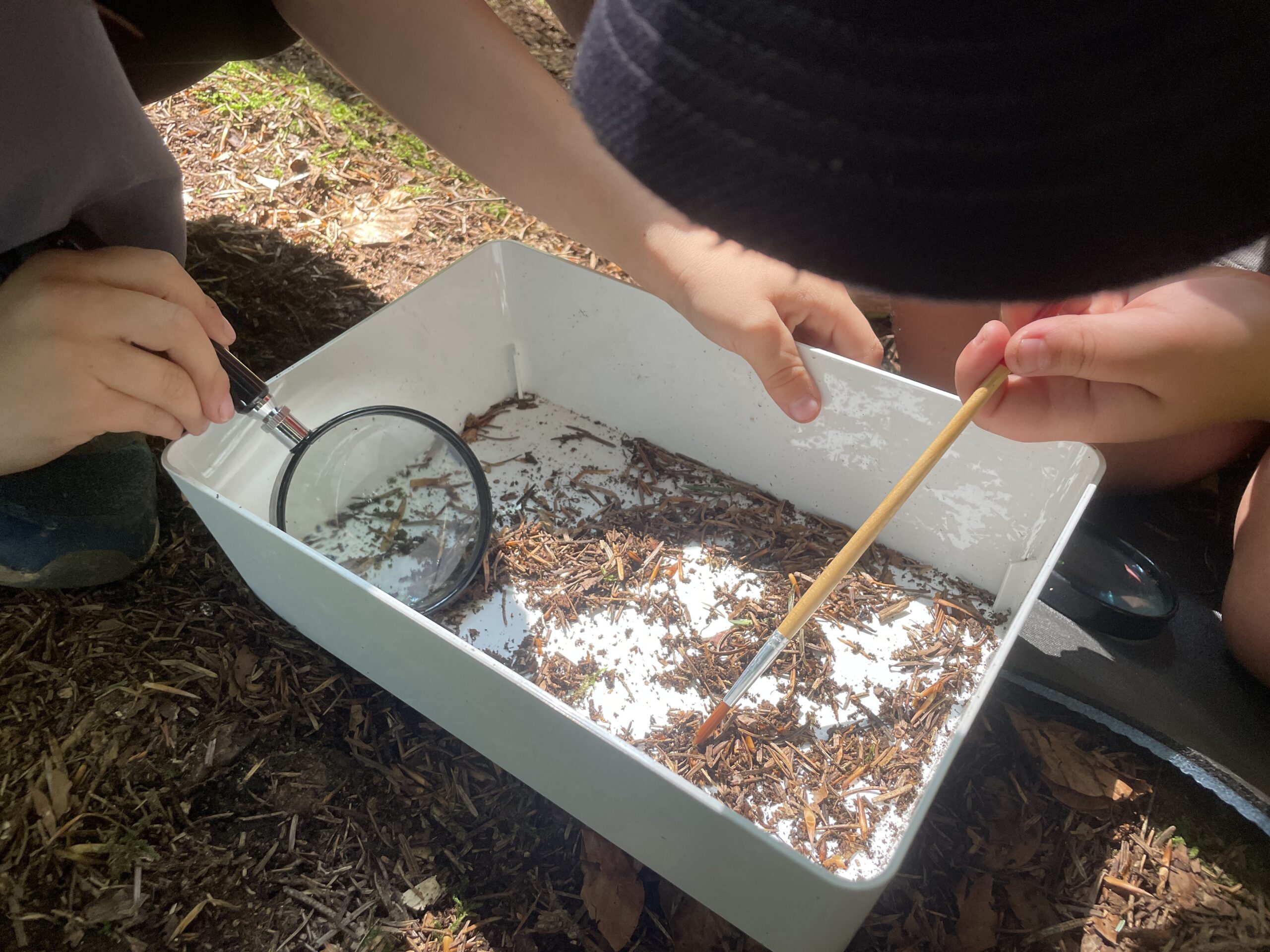 Das Naturmuseum St.Gallen und die Naturschule St.Gallen bieten kombinierte Angebote an. Dabei wird das im Museum erworbene Wissen im Wald vertieft und angewendet. Die Schulklasse untersucht den Waldboden und das Totholz, beobachtet unterschiedlichste Krabbeltiere und versucht diese zu kategorisieren und zu bestimmen.